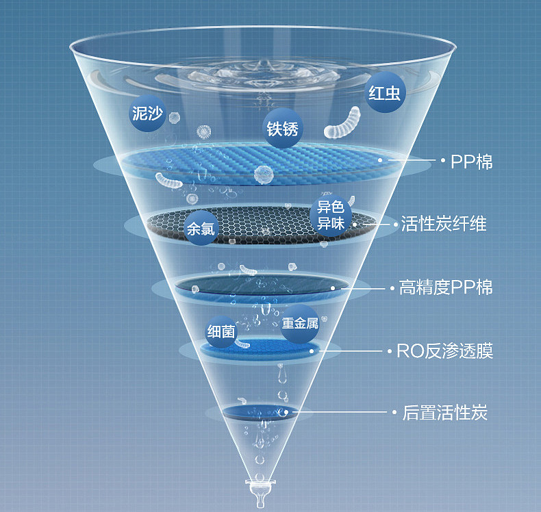 其核心过滤技术为 RO 反渗透膜,过滤精度极高,可达到 0.0001 微米,几乎能去除水中所有的杂质和污染物,产出的水接近纯水,能够满足直饮需求,是目前市场上过滤效果最好的净水设备之一