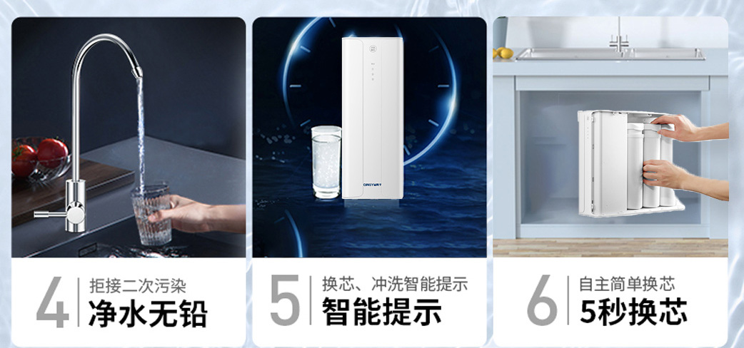桶装水不仅成本较高,而且存放时间过长还容易滋生细菌。而净水器可以随时为你提供新鲜纯净的饮用水,无论是清晨的第一杯水,唤醒你沉睡的身体;还是运动后的畅快补水,快速补充流失的水分;亦或是夜晚的安神之饮,伴你进入甜美的梦乡,它都能完美胜任。